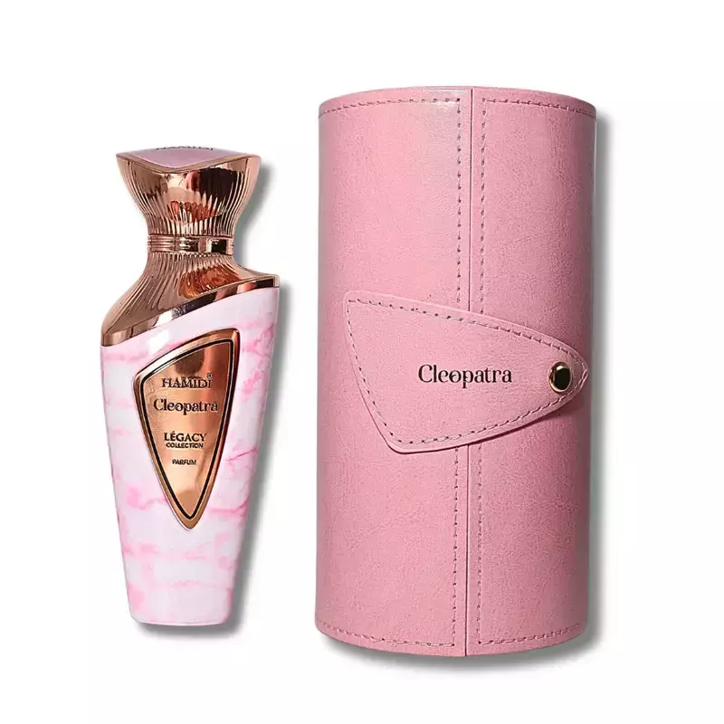 Cleopatra de Hamidi é um perfume Feminino. Esta é uma nova fragrância. Cleopatra foi lançada em 2023. As notas de topo são: Cereja Preta, Pimenta Rosa e Açafrão. As notas de coração são: Madeira de Cashmere, Rosa de Maio, Peônia e Violeta. As notas de fundo são: Ambroxan, Almíscar, Mirra e Olíbano.